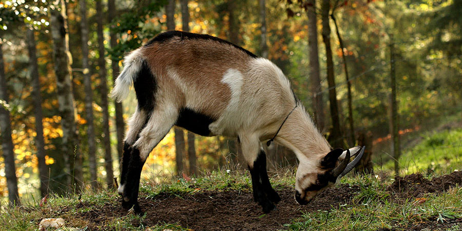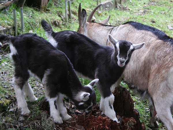 Domesticated more than 10,000 years before present, the Domestic Goat now occurs as many breeds selected for production of meat, wool, and/or milk. The original wild stock of goats that were the source of all domesticated breeds was from Anatolia, now Turkey. One of our goat breeds is a cross between the Alpine Goat and the Toggenburg Goat, both breeds from Switzerland and both bred for milk production. These two breeds differ in milk production. The Toggenburg Goat has low butterfat content and the Alpine Goat produces milk with high butterfat content and in greater quantity. The cross between the two has produced a hardier goat adaptable to cooler climates and with high milk production of good quality.